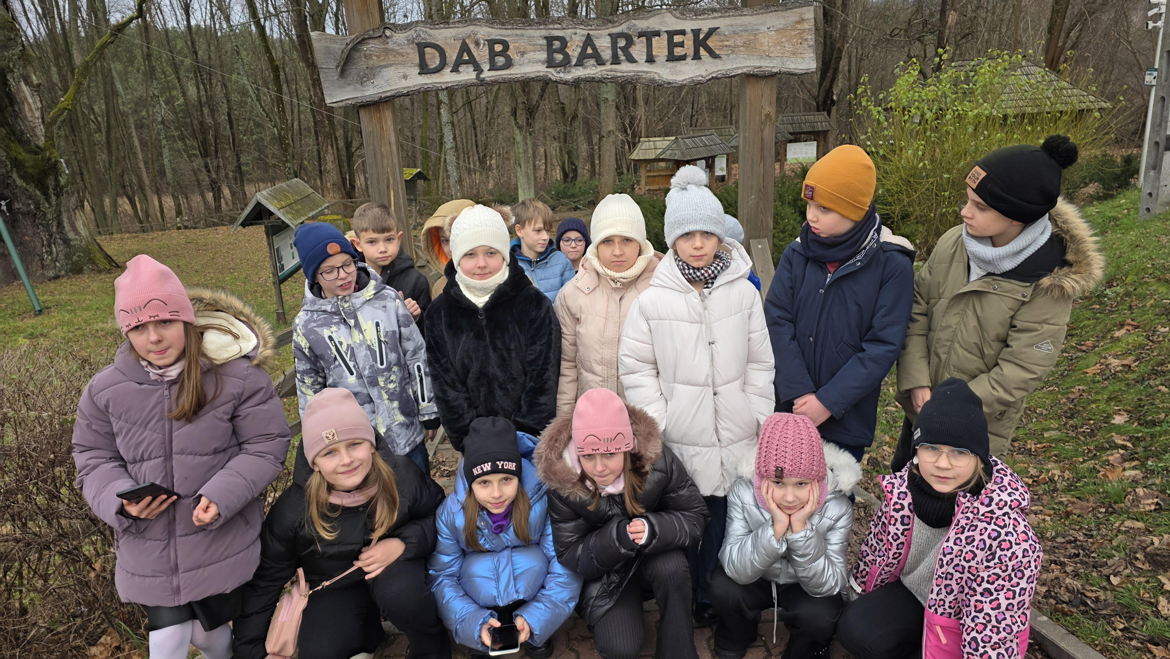 Na zakończenie wycieczki uczniowie odwiedzili Dąb Bartek – jeden z najstarszych i najsłynniejszych dębów w Polsce, chroniony jako pomnik przyrody. To wyjątkowe miejsce pozwoliło młodzieży poznać historię regionu i znaczenie ochrony przyrody.