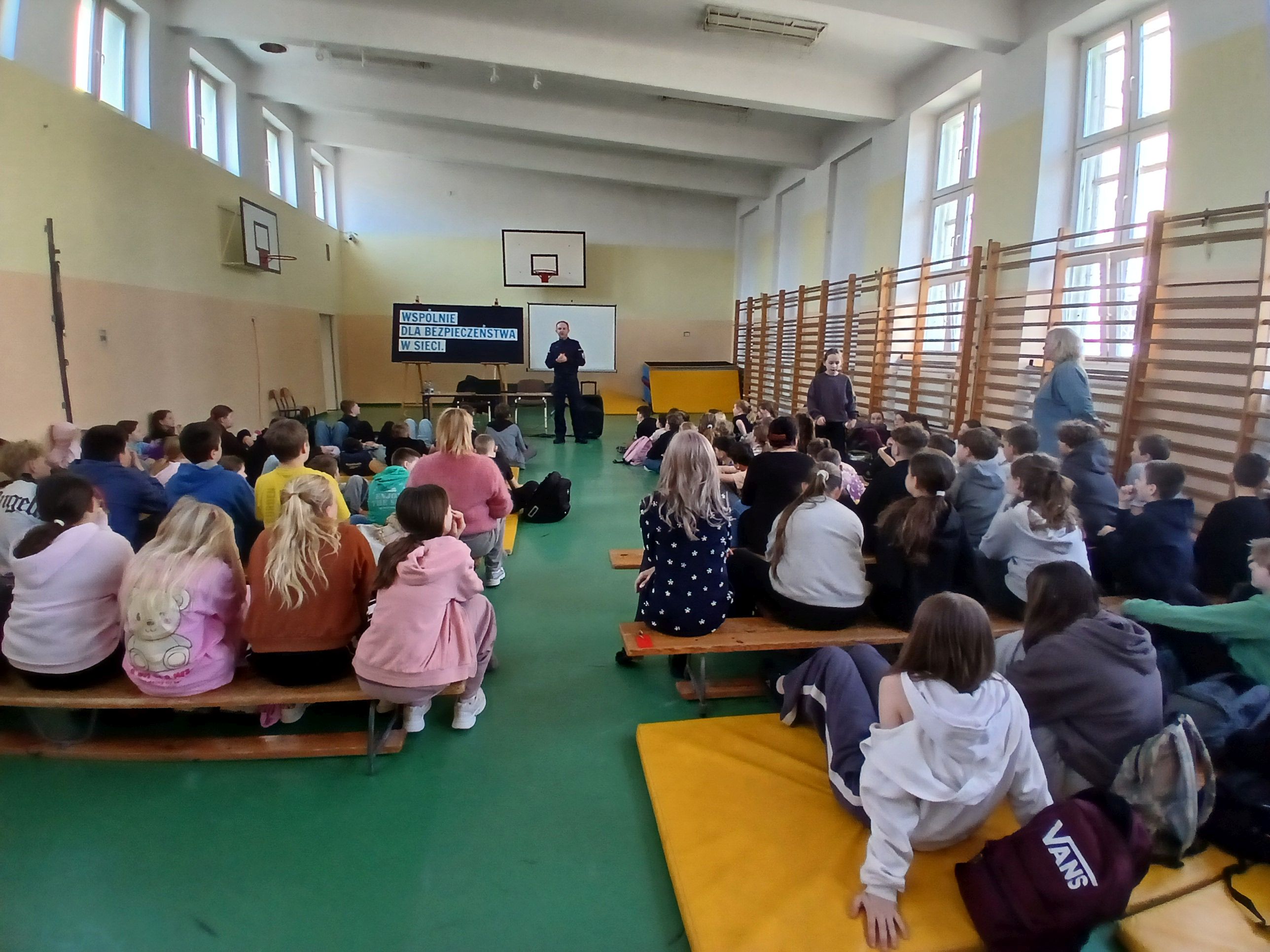 11 marca 2026 r. odbyły się warsztaty prowadzone przez funkcjonariuszy Policji dla uczniów klas 4, 5 i 8a. Celem spotkania było zwrócenie uwagi na zagrożenia związane z mediami społecznościowymi, grami komputerowymi oraz cyberprzemocą. Uczniowie dowiedzieli się o zagrożeniach płynących z nieprzemyślanego użytkowania z zasobów internetowych, jak również o konsekwencjach prawnych nadużyć w Internecie.