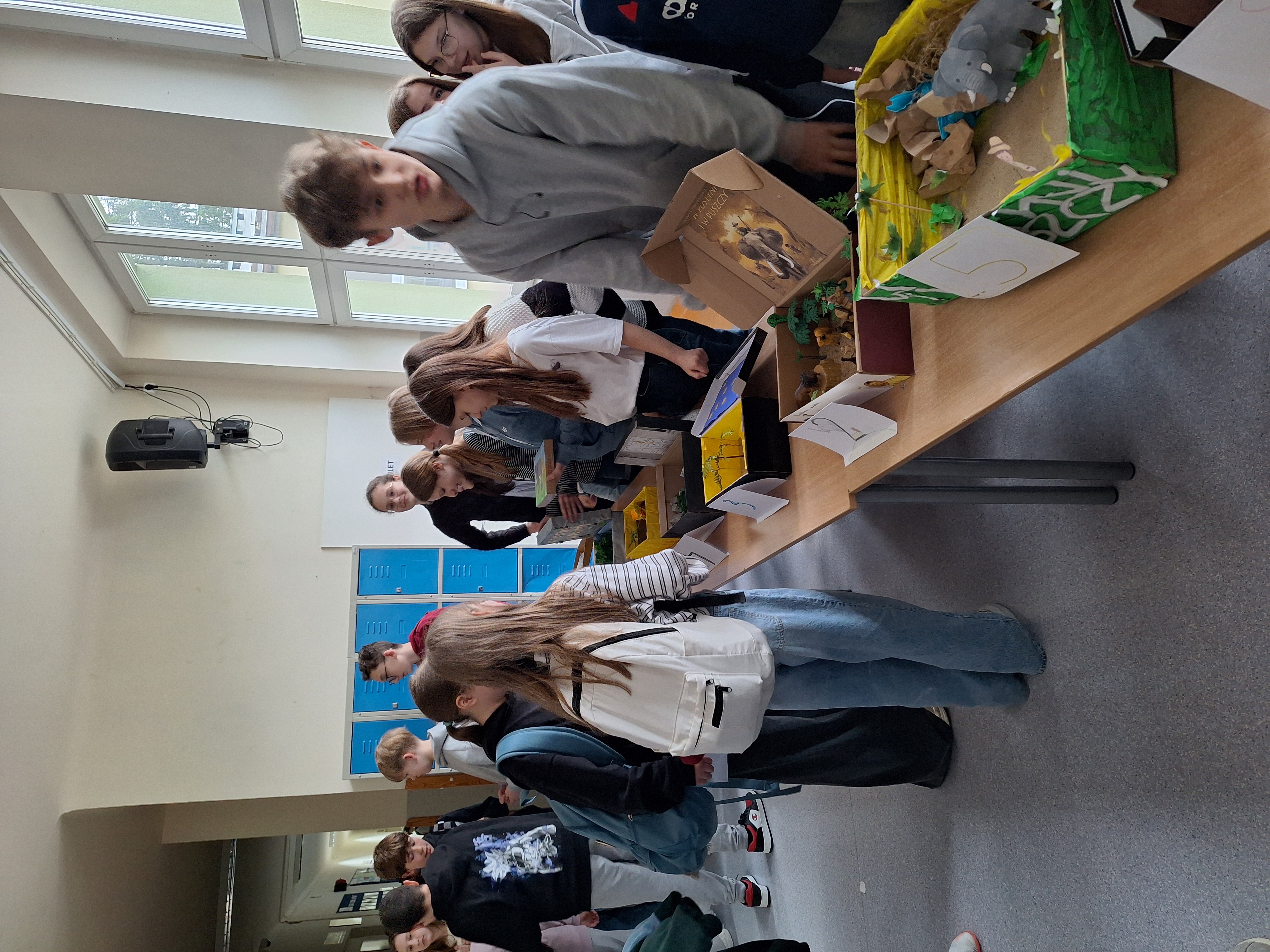 Uczniowie klasy 6b na lekcjach języka polskiego zrealizowali projekt edukacyjny pod hasłem: Lektura w pudełku - W pustyni i w puszczy. Uczniowie pracowali w ośmiu grupach projektowych. Każda z nich umieściła w pudełku rekwizyty związane z treścią powieści pt.W pustyni i w puszczy H. Sienkiewicza. Uczniowie wykazali się dużą pomysłowością w doborze przedmiotów i komponowaniu wnętrza pudełka.