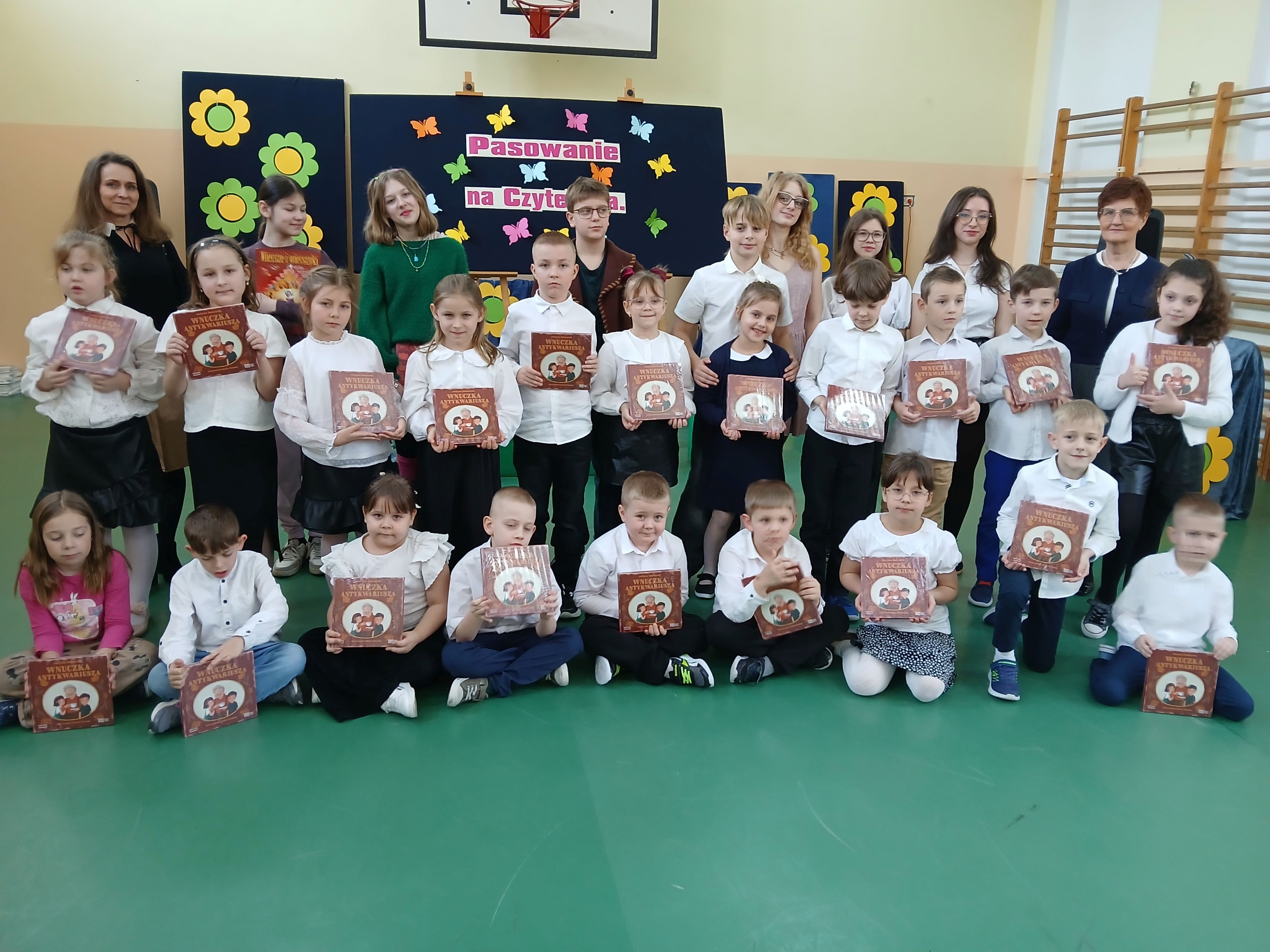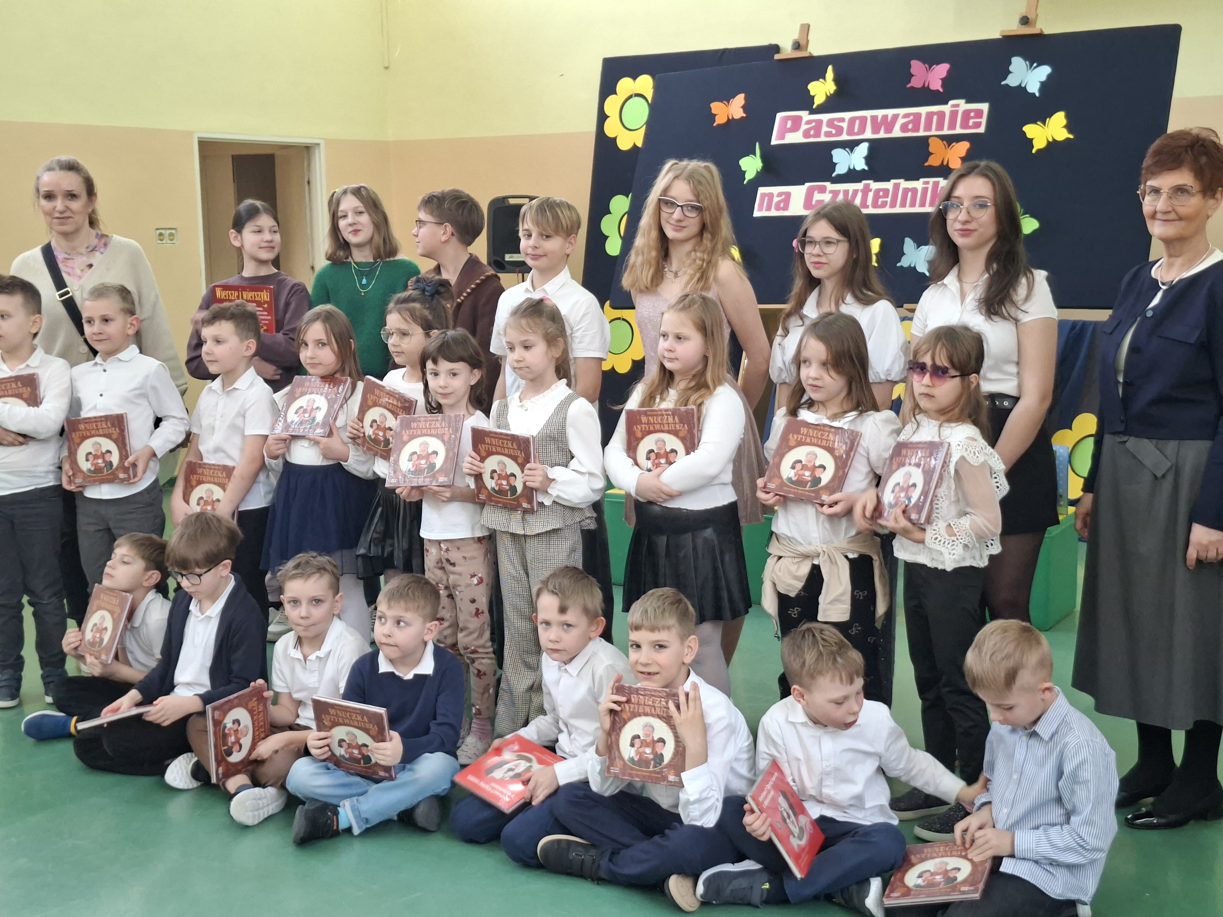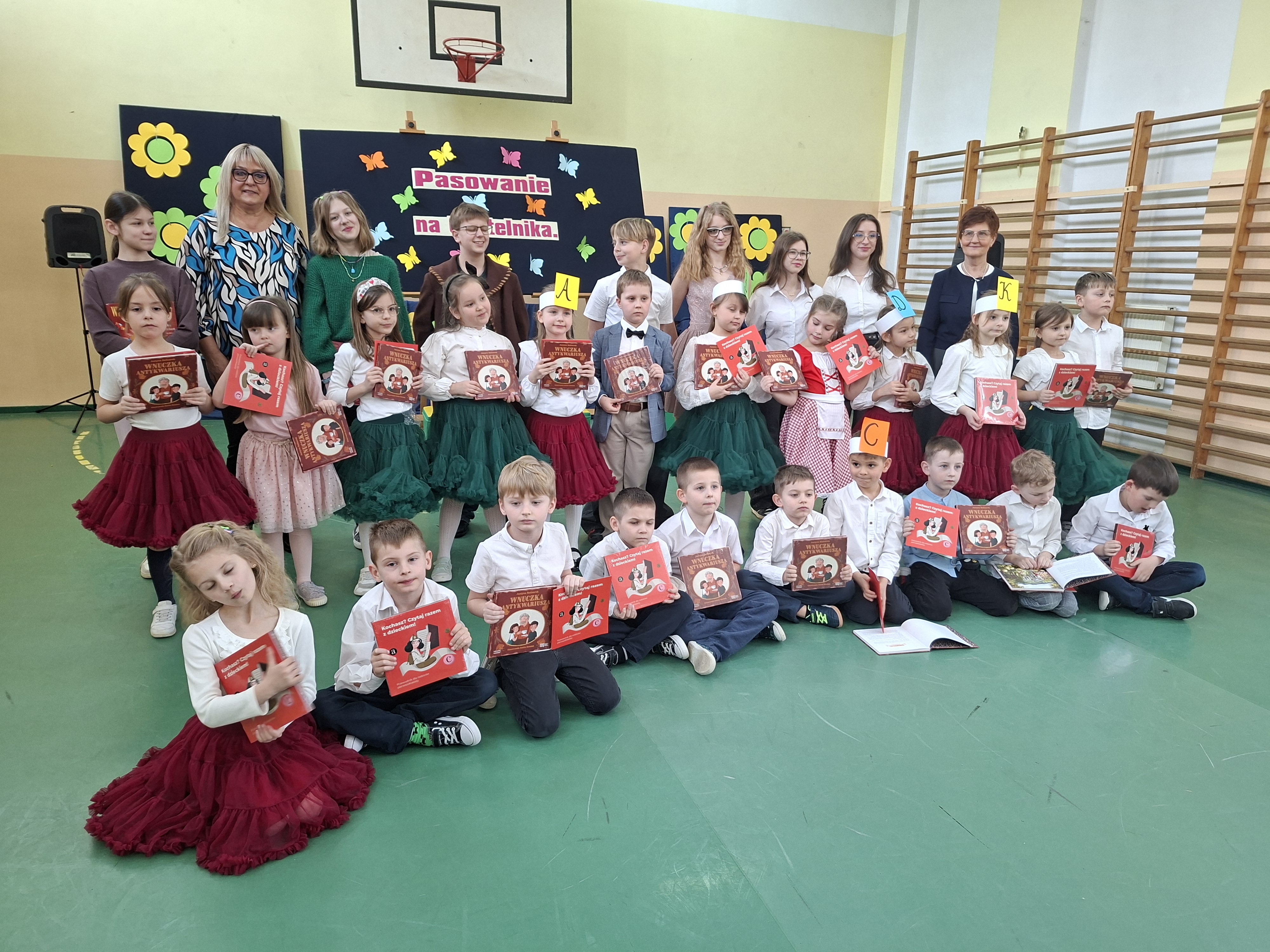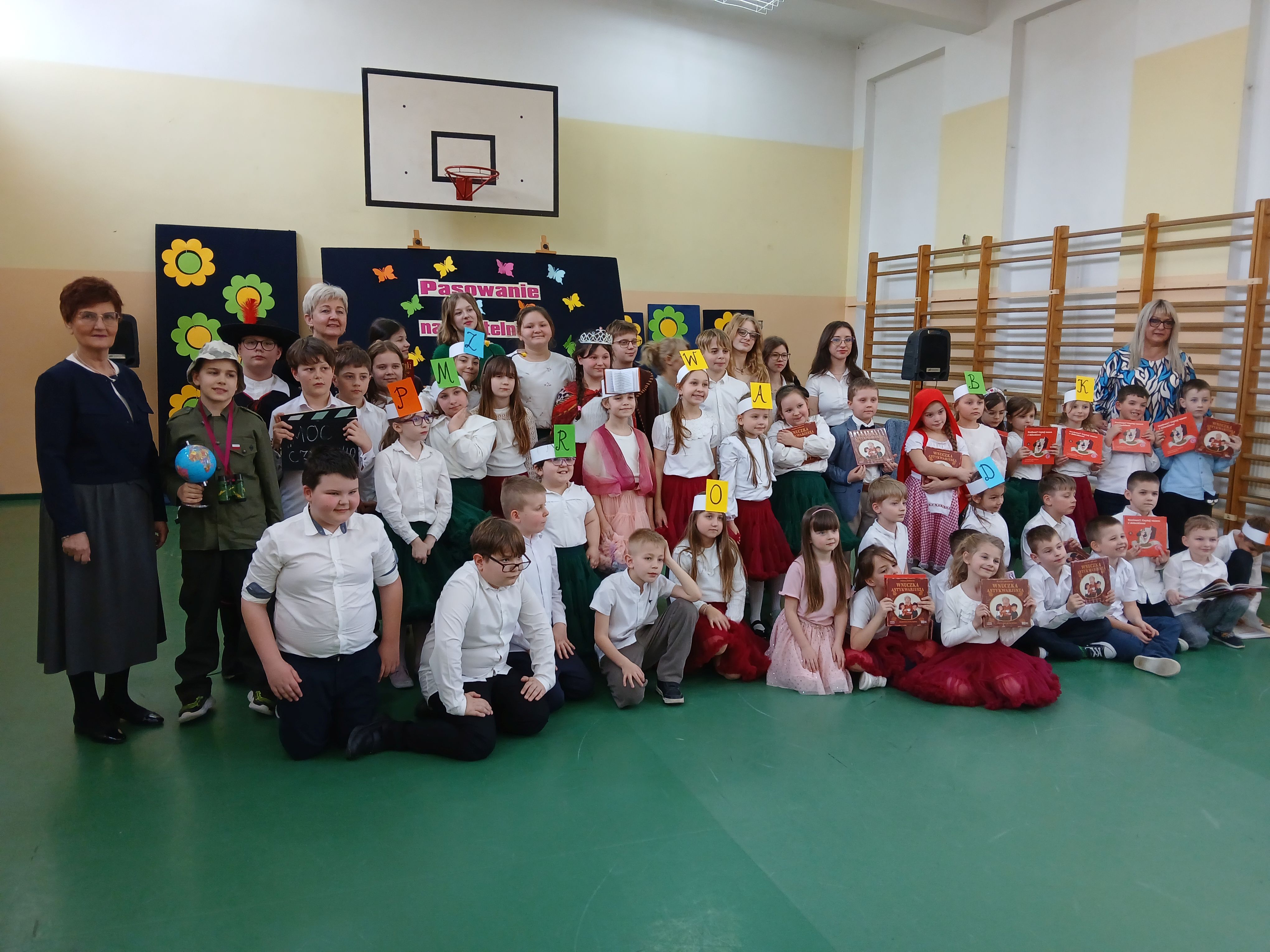 12 marca odbyła się uroczystość pasowania uczniów klas pierwszych na czytelników biblioteki szkolnej przez Dyrekcję Szkoły. Pani wicedyrektor zachęciła małych czytelników do częstego czytania książek, które wychodzi na zdrowie. Uczniowie klasy 7b zapoznali pierwszaków z wierszami J. Brzechwy i J. Tuwima. Pasowanie uświetnił barwny występ Teatrzyku Bajkoludki pod kierunkiem p. M. Piechurskiej i p. A. Rybarskiej. Pierwszoklasiści otrzymali pamiątkowe dyplom, Prośby Książki i książkę z Narodowego Programu "Mała Książka Wielki Człowiek".