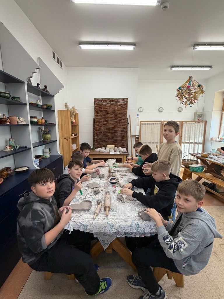 Klasa 5a uczestniczyła w warsztatach o ceramice w Muzeum Wsi Radomskiej. Zajęcia przybliżyły uczniom etapy rozwoju ceramiki oraz zmiany w technice lepienia i wypalania garnków, obróbce gliny. Pod kierunkiem edukatora ulepili garnki, miseczki, talerzyki, ozdoby. Praca sprawiła im dużo radości. W trakcie lepienia chętnie wymieniali się spostrzeżeniami, pozytywnie ocenili prace kolegów i koleżanek.